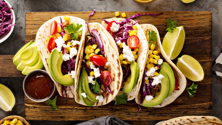 While vegetables might be a taco night staple, pickled vegetables can add a new element to your routine. During the pickling process, vegetables are soaked in a vinegar-based liquid called brine. Not only does this add a salty, acidic flavor, but it also preserves your ingredients — whether you need to use up a veggie before it goes bad or just want your fillings to last longer than the fresh variety. If you haven't yet made pickled corn, you're missing out on a juicy burst of flavor, perfect in anything from tacos to tangy salads. The flavor of sweet corn is balanced by the salty, vinegar-filled mixture, creating the best kind of zing for your next batch of tacos.