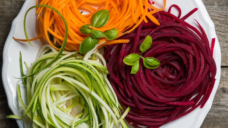 Another option is to julienne your noodles, whether you do that solely with a knife or with the help of a mandoline. Here, the trick will be to cut your vegetable lengthwise into quarters and then use the knife to cut long strips of the veggie out of each one. This method can lead to more noodle-like veggies, but it can also be tricky to get the thickness right.