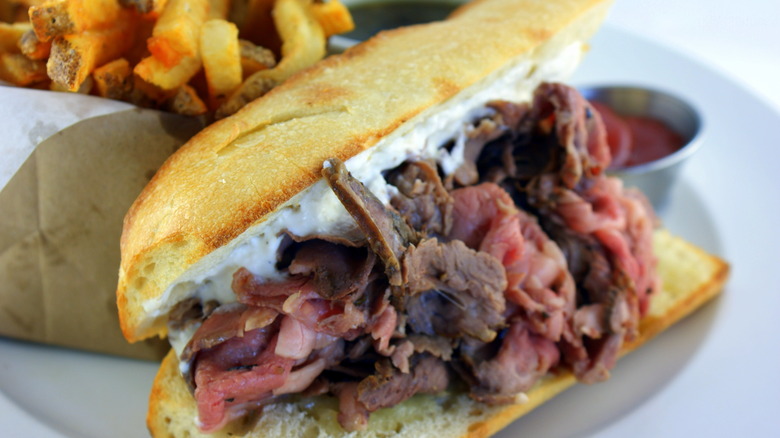 One of the best things about making a big dinner is all that time in the kitchen gets you more than one meal — you get leftovers, too. You can either enjoy those leftover prime rib steaks as they are, or turn that leftover meat into a whole new dish. French dip sandwiches with toasted bread are an obvious choice. Or you could take a cue from Carmy and make some Italian beef sandwiches à la The Bear. Just sauté some onions and peppers for added texture, and layer on some Swiss or provolone cheese to hold the whole shebang together.