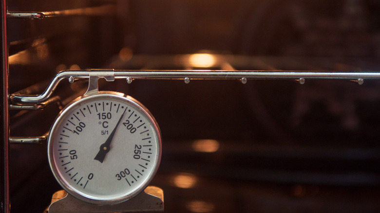 Apart from having the right thermometer, you need to know how to use it. The best way to get the internal temperature of the prime rib is to insert it in the middle of the roast at the thickest part. Ideally, check the temperature when it's a couple of minutes before the finished cooking time. Some home cooks get anxious about temperature and use the thermometer too many times, repeatedly opening the oven door to poke unnecessary holes in their prime rib. So use a good instant-read thermometer and only check the temperature once — and keep the oven closed so you aren't losing heat, which will affect the overall cooking time.