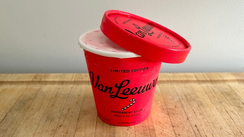 Van Leeuwen got its start on the streets of New York City in 2008, and its French-style ice cream loaded with high-quality eggs is now available in grocery stores nationwide. Van Leeuwen's limited-edition Peppermint Stick flavor is not just good — it's fabulous. The creamy delight is generously dotted with chunks of candy cane, giving the otherwise off-white-hued treat a pink and white speckled visage.