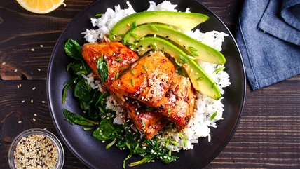 Besides the textural benefit of honey, this natural sweetener has a more distinctly complex flavor than cane sugar. Additionally, when you use honey instead of white or brown sugar, you will likely use a smaller amount due to honey's concentrated sweetness. Honey's sweet taste and its makeup of approximately 15% water make this natural sweetener an exceptional ingredient for caramelization during cooking. Not only does the extra moisture work to make your fish soft and tender, but when cooked, honey ignites the Maillard reaction and turns your salmon a rich golden brown color, which only creates additional flavor. When added to the right blend of extra ingredients, honey will make your next batch of salmon moist and flavorful.