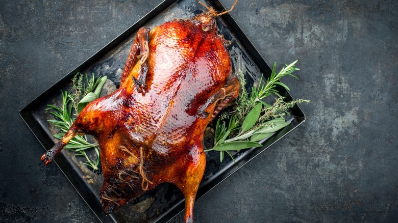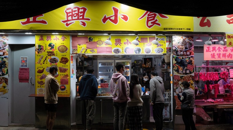It's easy to confuse oyster sauce with Hoisin sauce. Both are rich, thick, dark brown sauces used in many Asian dishes. However, one key difference between the two is that oyster sauce contains seafood. Though early iterations of Hoisin sauce contained seafood, as we touched on earlier, these days, the sauce is plant-based and gets its flavor from fermented soybeans. Where oyster sauce has a fairly simple flavor, Hoisin sauce tastes much more complex from the spices.