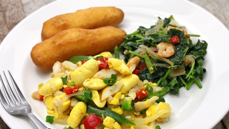 The origins of festival come from the period in the 18th century when enslaved Africans in Jamaica were given a weekly ration of both cornmeal and salted fish. This led to the creation of a variety of cornmeal-based dishes — and the fact they're typically served alongside fish. Festival is no exception, as it's usually served alongside either escovitch fish (fried fish with pickled vegetables on top) or saltfish (dried, salted cod typically served with a red fruit known as ackee). You will, however, sometimes also see it alongside jerk chicken, proving that there's no bad time for festival. Although it should be noted that they're best served warm, and eaten on the same day as they're made.