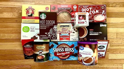 There are many brands of hot chocolate or cocoa mix available commercially. I scoured several grocery stores to obtain as many as possible to sip and study. To appreciate the flavor of the cocoa mix as is without being diluted by any dairy, I combined all of these with the suggested amount of water before assessing them based on aroma, texture, flavor, and overall appeal. I then ranked them from least to most favorite. Read on to see which cocoa brand landed on top.