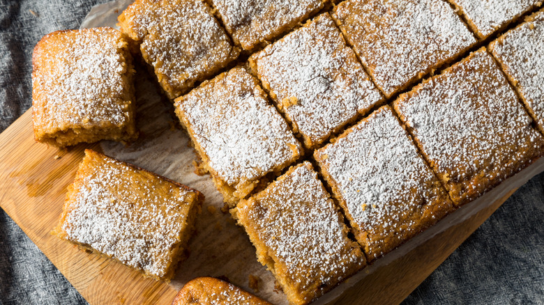 Instead of drizzling in the oil that your box mix calls for, skip the oil and instead add an equal amount of store-bought or homemade applesauce — and enjoy a cake that certainly won't be dry. Applesauce saturates the dry ingredients and provides moisture in the same way that the oil would. Though it doesn't contain the same level of fat that oil does, this sweet and tangy apple puree still makes for a satisfying swap, and one that will ensure your cake stays hydrated even as it bakes in the oven.