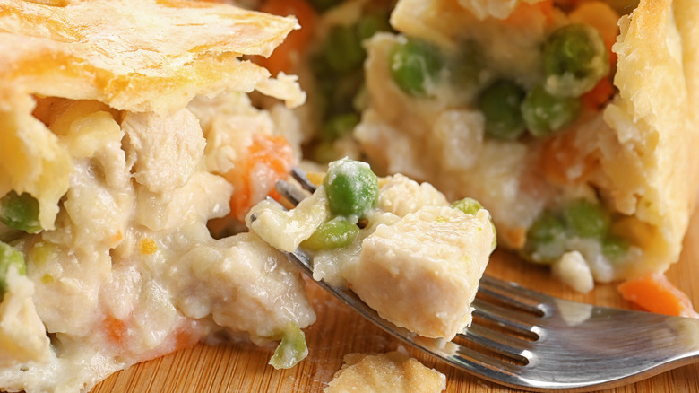 While many pot pies are generously filled, some can be seriously lacking, and this can leave you with a meal that's 90% crust and 10% filling. Rather than throw the whole thing out, you can add much-needed moisture by whipping up a quick gravy. A chicken or beef gravy is a fantastic way to add extra flavor and lubrication to a pot pie without distracting from its central flavors. It can also be a good option if you're serving your pot pie with a side of mashed potatoes or some other carb and find that the pie itself doesn't have enough filling to keep everything on your plate juicy.