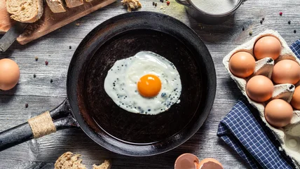 A nonstick frying pan is also a non-negotiable when making eggs. Most nonstick cookware is coated in something called PTFE, commonly known as Teflon, so this is an easy material to look for when deciding which pan to purchase. You can also use an uncoated, naturally nonstick material. If you own a cast iron skillet, it's not just for getting a golden sear on your meat — it also makes for a great egg pan.