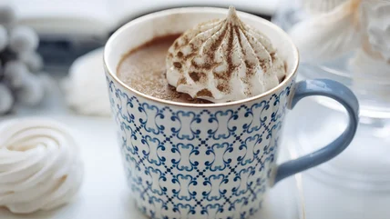 Similar to whipped cream, meringue is light and airy and can balance out some of the heaviness of thicker hot chocolates. Plus, it's got a fluffy texture reminiscent of marshmallow fluff that melts in your mouth when you eat it. It also pairs well with variations of this beverage, such as a lemon or white hot chocolate.