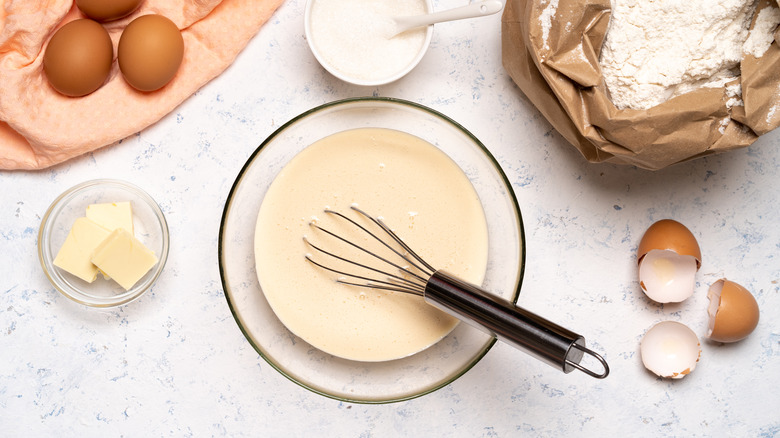 Putting together this pancake-on-a-stick is a cinch. Starting with your batter, you can use a store-bought mix from a box or carton to keep things manageable, or if you're feeling ambitious, you can whip up classic pancake batter from scratch.