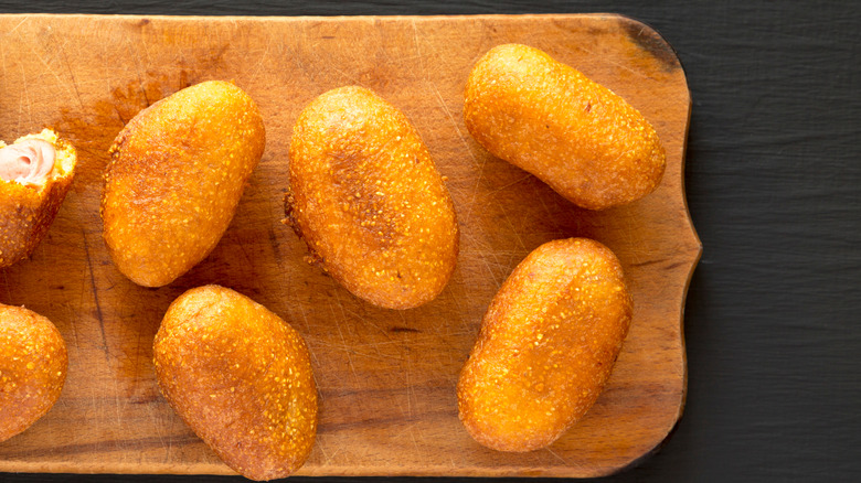 It's hard to imagine anything more fun than a corn dog. This battered and fried hot dog on a stick is like the savory version of a popsicle, and it's easy to see why it's been a staple of American cuisine for nearly a century. Not only is a corndog a delightful novelty in terms of culinary composition, but it's near perfect. The sweetness of the cornmeal with the savory, salty frank is the stuff of fantasy snacking, and the crisp, fried exterior is an ideal contrast with the fluffy interior that coats the hot dog core.