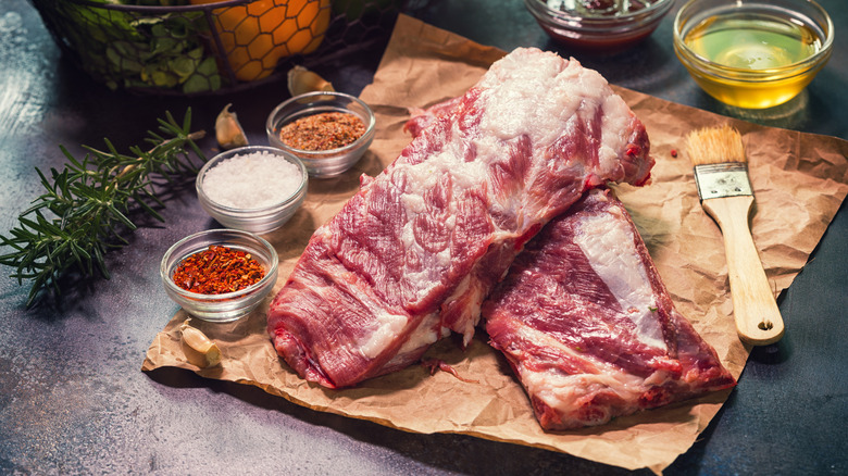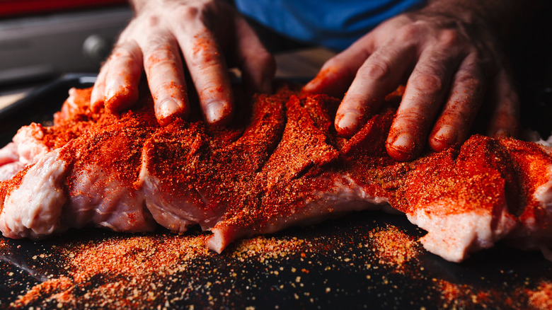Barbecue is all about using big, punchy flavors, but when it comes to ribs, you may need less than you think you do. Overseasoning ribs is a surefire way to ruin the natural flavor of the meat itself. It's worth bearing in mind that ribs are high in fat, and this fat provides flavor — but the actual flavor of the pork meat itself is pretty mild. As such, you want to balance things out so that your seasoning heightens the flavor of the fat without completely masking the taste of the meat or making everything too salty or sugary. Erring on the side of caution with your seasonings is the way to go.