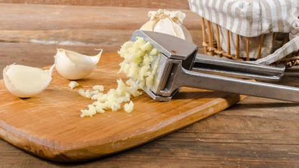 The key when shopping for a garlic press is to look for one that's sturdy and made from durable materials. Also, check that it's easy to clean — some garlic presses have removable sections, which makes cleanup easier. If you're buying online, reviews are your friend. You want your press's output to be uniformly sized pieces of garlic, which will ensure that everything cooks evenly.