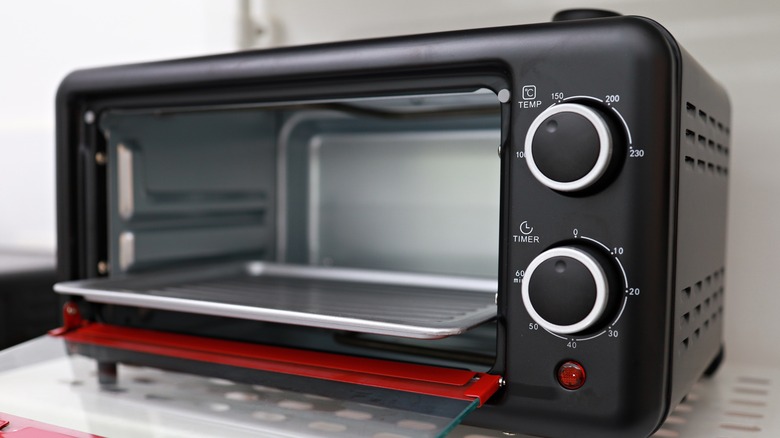From your daily morning toast to baking full-sized cakes — or even making an entire roast dinner — your toaster oven is a little powerhouse appliance that offers amazing versatility for how little space it takes up in your kitchen. The downside to the convenience of having a smaller and faster oven on your countertop is that crumbs and grease can build up quickly if you use it regularly. Not only is it unhygienic, but crumb buildup can become a fire hazard if you leave it unchecked. So it's important to clear it out and clean it properly at least once a week.