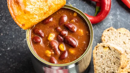 When those moments happen, the 7-can soup has your back. This soup is the perfect way to get those cans out of your pantry — and it only takes seven easy ingredients, starting with a base of a can of vegetarian chili. Add to that cans of chickpeas, black beans, corn, diced tomatoes, mixed veggies, and green chilies, as well as a helping of taco seasoning and a liberal sprinkle of salt and pepper, and simmer it until everything comes together. Presto — you have dinner in a flash.