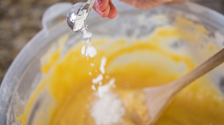 One tip for using a convenient mix — while still baking a great cake — is that you shouldn't always trust the baking powder in your cake mix. Leavening agents like baking powder are surprisingly delicate, and the powder in cake mixes that have been sitting on a shelf for a while might be lacking in freshness. Baker powder's lifting abilities decrease as it becomes less fresh, and your cake might end up flat and dense if the rising agent can't do its job. Luckily, the solution for light, fluffy, high-rise cakes made from a box is simple.