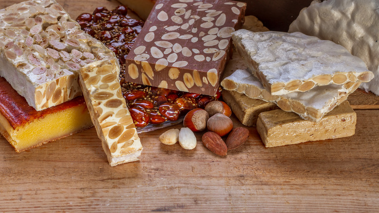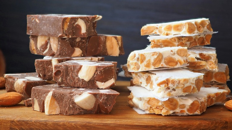 Without easy access to regional markets or artisanal confectioners, traditional nougat on its own can be harder to find outside of Europe and the Middle East. Even today, nougat is still largely made by artisan producers who supply a highly localized demand. But in this interconnected day and age, it's possible to order nougat online through various manufacturers. Torrone Candy, a Vermont-based company that specializes in Italian nougat, ships their products internationally. Andy Anand is another American chocolatier that also ships internationally — though it offers local pickup too, for customers in Los Angeles. This brand offers an especially wide array of innovative nougat flavors, including macaron-filled nougat or coffee-flavored nougat dotted with roasted espresso beans. Additionally, there is a selection of Amazon vendors that offer varieties of nougat for purchase.