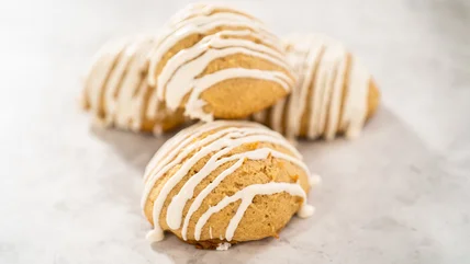 Alternatively, you can make eggnog icing and drizzle it over regular sugar cookies. This will result in cookies with a less pronounced eggnog taste, but you'll have some control over the intensity of flavor based on how much icing you pipe onto your cookies.