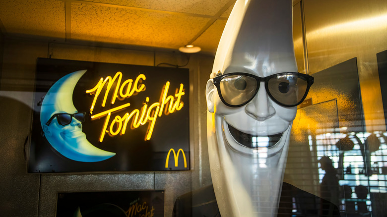 The character is a human-like creature in a suit, reminiscent of the singers from the 1950s. However, one distinctive feature sets him apart: His giant mood-shaped head. This strong visual link between McDonald's and nighttime was a pointed attempt to get the public to associate fast food with dinner. Mac Tonight was a popular feature at McDonald's restaurants from the late 1980s well into the 1990s. He was eventually retired as McDonald's dinner caught on, and the company moved away from mascots in general.