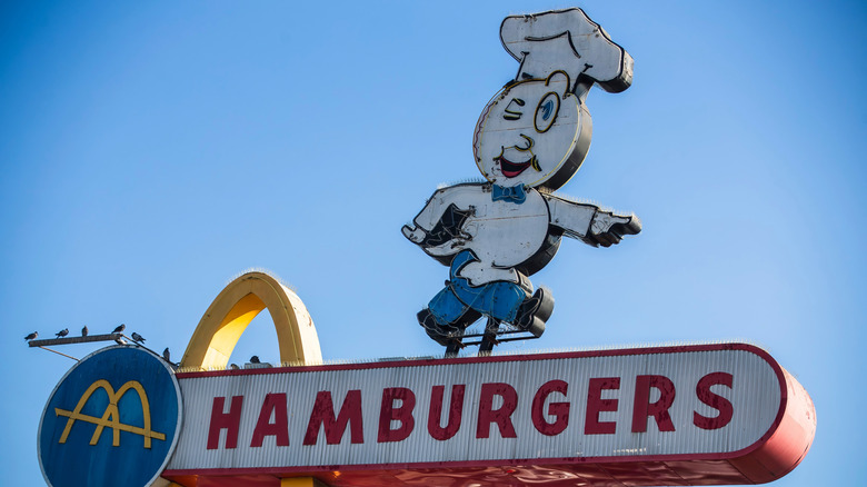 Speedee is a human-like creature who wears a chef's outfit. His head is in the shape of a hamburger. Speedee doesn't have much of a personal story, like the rest of the McDonald's characters. However, unlike most of the popular characters of the late twentieth century, Speedee can still be seen at a few of the oldest McDonald's locations. One example is in Downey, California — just about 15 minutes away from Los Angeles. Speedee is perched atop the sign, and the Golden Arches are noticeably smaller. He seems to be pointing customers towards McDonald's.