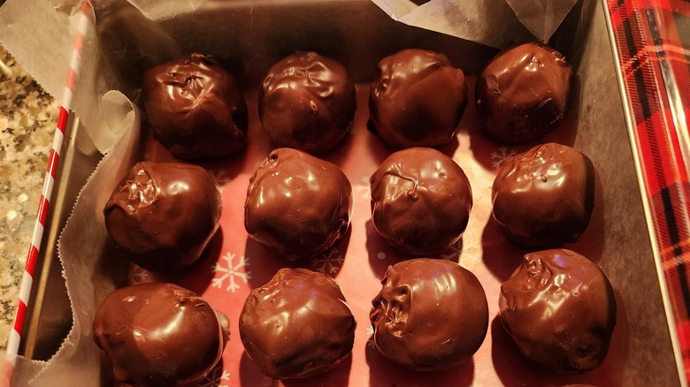 Chip isn't the only one enjoying this tasty holiday treat every year. Chocolate peanut butter balls are popular in many homes around Christmas, as evidenced by the online comments of its fans. In a Reddit thread titled "Crispy Chocolate Peanut Butter Balls," Redditors confirmed that the candy is one of the best holiday snacks for the family. One user said, "My grandma used to make almost this exact same recipe every Christmas and I'd eat almost all of them by myself."