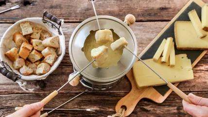 Your best melty bet for broiler fondue cheese is to use a creamy cheese with a thick but soft rind. Bloomy cheeses such as Brie and Camembert are perfect, accessible choices to grab. The rind should hold up just enough in the broiler so you don't end up with a gooey mess, while still delivering a melty texture. And don't underestimate options such as Swiss, Gruyere, or Gouda either. These three cheeses are great alternatives to the specialty Raclette cheese, the king of melted cheesy goodness hailing from Switzerland.