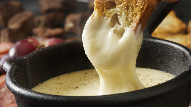 Nothing compares to the satisfying sight of a beautiful, melty cheese pull. Even better is the first bite after you dip in a crunchy cube of bread or a fresh veggie. Melted, fondue-like cheese offers the kind of bites that make eating luxurious. But you don't need to go to a restaurant, buy a special fondue pot, or wait for a block of cheese to melt on your stovetop to attain your own luxurious, cheesy bite. Simply turn to your favorite everyday appliance — the oven — and get acquainted with the broiler.