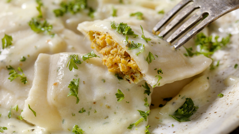 Few dishes are more iconic — or in modern times considered more decadent, although that wasn't always the case — than lobster. Whether you're talking about whole-boiled lobster, lobster mac and cheese, or butter-poached lobster, there's something that just feels fancy about the sea bug. And maybe no dish feels more satisfyingly high-class than lobster ravioli, which is why it's become so popular in the last few decades.
