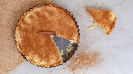 A more extensive version of the recipe can include vanilla, nutmeg, both brown sugar and regular sugar, and some heavy cream. Whatever recipe you choose, the filling will brown as it bakes, and the milk will take on a texture that is quite different from other pies. When it's done, its top will almost look like a quiche. Since the pie will be wobbly when it comes out of the oven, it's important to let it rest on the counter until it's cool enough to put in the refrigerator. Then let it chill there until it has firmed up enough for you to cut it.