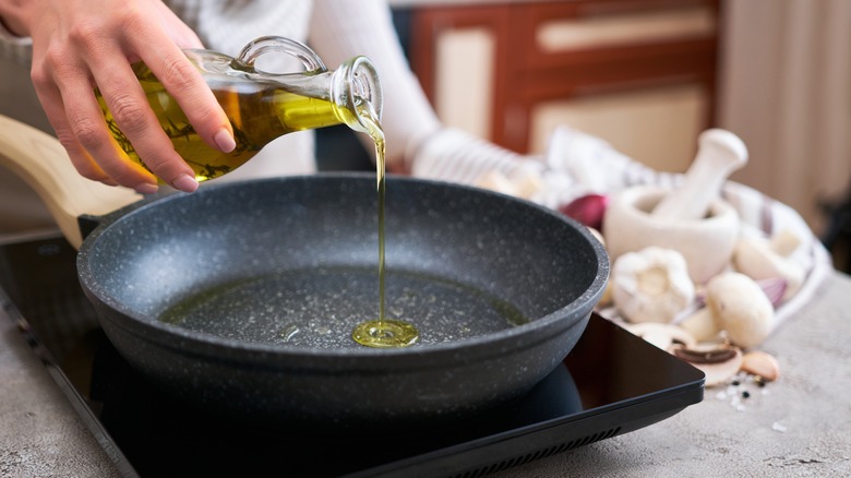 It's hard to argue that most foods taste just a little better when they're deep-fried. Deep frying at home is easy, but there are some techniques to use to make sure your oil doesn't burn — and also to keep you safe. If you don't own a deep fryer, then you'll have to regulate the oil's temperature on your own, which can be a little tricky if you look away for a minute. But if you find yourself in a situation where your oil has become way too hot, there is one simple fix: add more oil.