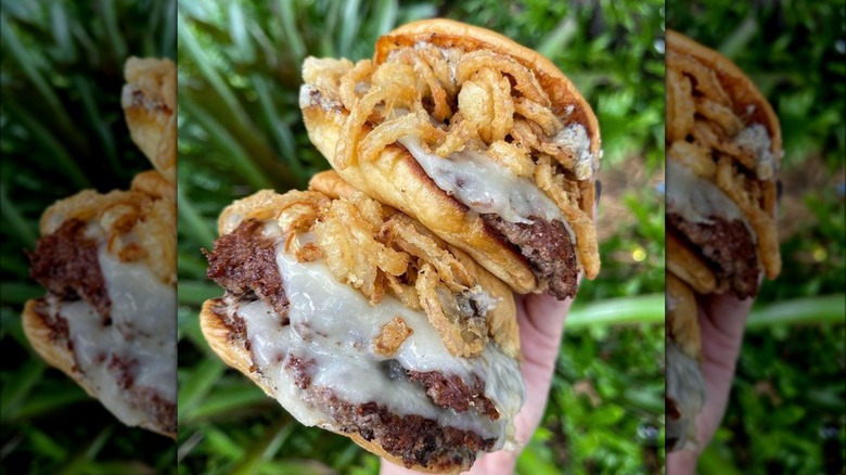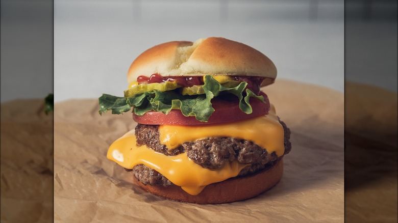 Shake Shack uses a custom burger blend — the precise recipe seems sworn to secrecy, so the exact beef cuts and fat ratio remain intriguingly elusive. Here's what we do know: The burgers are simply seasoned with salt and pepper and smashed on the griddle, but they're still on the thick side, creating a tender burger with a light crust around the edges. The potato buns are perfectly toasted yet still soft and pleasantly squishy. What all of this adds up to is one of the best burgers in the game. Shake Shack gets high marks across the board for consistently mastering each step of the process in a way that's rare and commendable for such a large-scale operation.