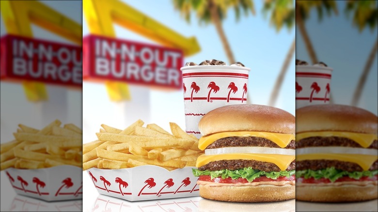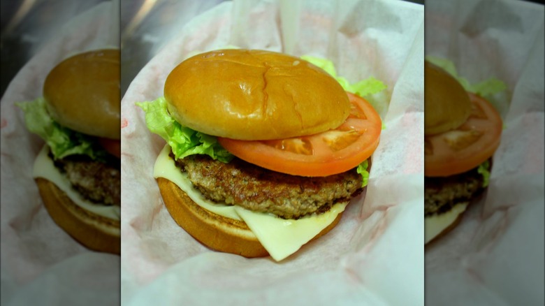 While you won't find the menu particularly inventive, what you will find is an honest, classic burger that hits the spot. Burgers typically come with fresh lettuce, sliced onions, American cheese, and tomatoes, along with In-N-Out's tangy and legendary sauce. Each of these ingredients form a burger that's greater than the sum of its parts. You haven't truly lived until you've had a Double Double Animal Style — in-house lingo for a burger cooked with a drizzle of mustard and topped with added pickles, grilled onions, and extra sauce.