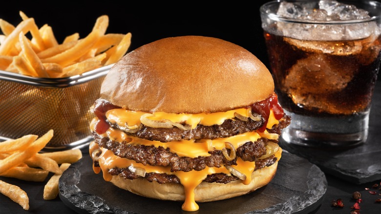 Without a doubt, Wendy's is one of the biggest burger chains in the country and one of the largest companies on this list, sprawling across the USA with thousands of locations. Compared to the other major burger chains that dominate the market, the burgers at Wendy's feel more filling and satisfying. The Baconator — a mammoth ½ pound cheeseburger topped with six strips of bacon — is a testament to the company's unabashed embrace of indulgence.