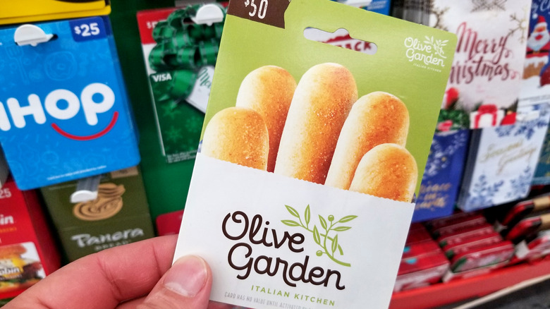 If you know multiple people who consider Olive Garden their favorite restaurant, you may even be able to receive a discount for your gift card purchase. Customers who spend $500 to $999 will receive a 5% discount on their purchase. If you spend $1,000 or more on Olive Garden gift cards, you'll receive 10% off. It's Olive Garden's way of saying thank you to its most loyal customers, whether they're taking advantage of the chain's endless pasta specials or simply enjoying the family-friendly atmosphere synonymous with the restaurant. In any event, customers may be happy to have options when paying for their meals.