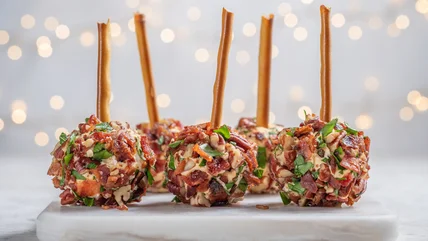 So what happens when you take goat cheese and form it into the shape of a delightful dessert cake pop? Cheese appetizer magic. Rolling these goat cheese pops in everyone's favorite salty, indulgent topping, bacon, is the show-stopping finish.