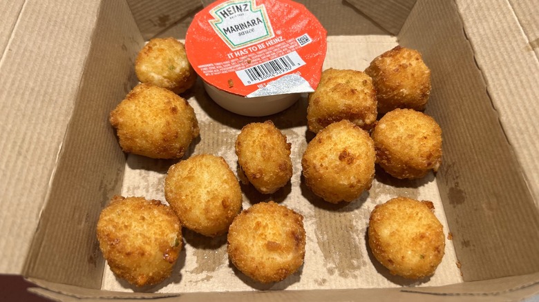 Ten golden brown balls come in an order, but these little guys pack a lot in quite a small frame. Once you break through the oily and crispy exterior, a super cheesy, but not too liquidy interior awaits. I'm not sure how many macaroni noodles were actually inside, but it didn't really matter as they were scrumptious. While the side cup of marinara sauce isn't required for full enjoyment, if you give these mac & cheese bites a dip in them, you may start believing this is the next evolution of mozzarella sticks.