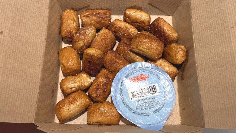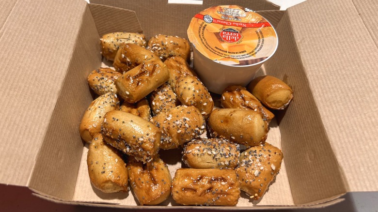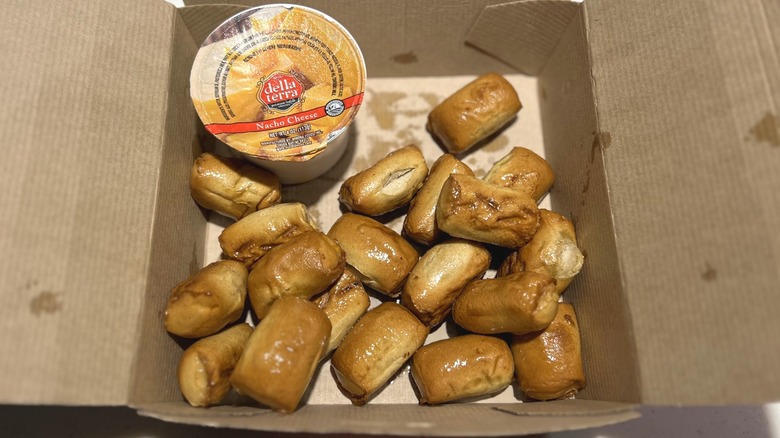 Like all the other Pretzel Bites, this one is lubed up in butter. There are about 20 pieces in a box, and at $7.99, it's a decent bang for the buck, and perfect for sharing.
