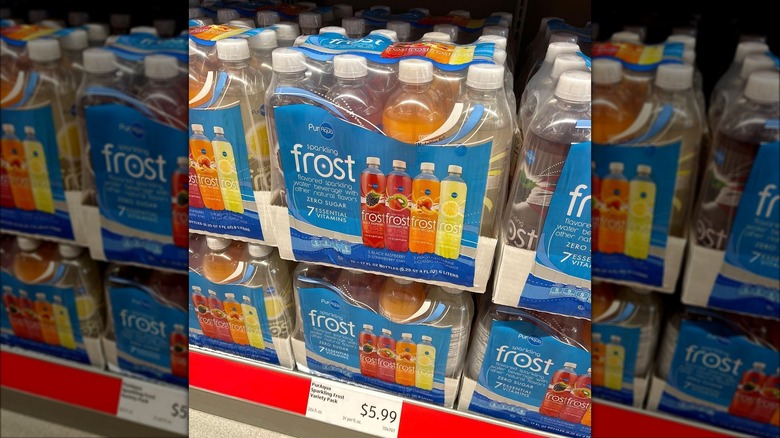 Discount grocery chain Aldi is known for selling quite a few dupes of name-brand products at only a fraction of the cost. Some of these copycat products taste so close to the brand name products that many Aldi shoppers have admittedly found themselves preferring them to the real thing. While plenty of snacks have been praised for their similarities, there is one Aldi drink that's being compared to the Sparkling Ice brand of fruity beverages.