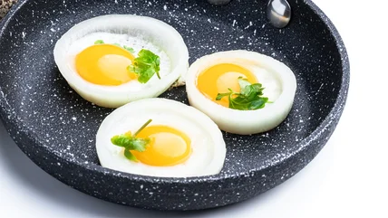 No, that doesn't mean breaking out the breaded onion rings from the freezer and fishing for the largest one. What this hack refers to are the actual rings created by slicing onions. Since they're naturally round, it's an easy way to corral those eggs and make sure they come out the same shape. Even better, using an onion ring as a mold means there's nothing to wash afterward. Just add it to your meal or eat it straight from the pan.