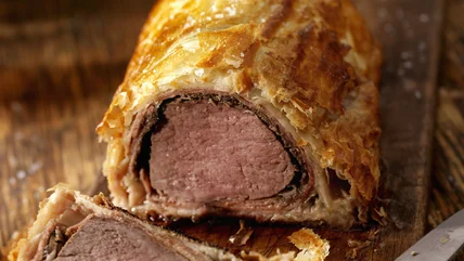 The best way to reheat your Beef Wellington is in the oven. You should reheat your leftovers on a medium-low heat between 250 to 300 degrees Fahrenheit. This will ensure that it doesn't end up overcooking. Another tricky part about reheating your Beef Wellington is not overcooking it to where the interior meat is tough and dried out. To ensure the exterior puff pastry doesn't burn, consider placing a sheet of aluminum foil over your Wellington. This will help redirect some of the heat, making sure your leftovers have that crispiness you're looking for without being overdone.