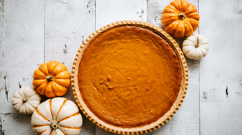Before you turn your nose up at the idea, it's important to consider that pumpkin can be served savory or sweet. Many already combine Worcestershire sauce and garlic with pumpkin seeds for a flavorful, savory snack on the go. Pumpkin has a mild earthy taste that makes it a versatile ingredient, meshing well with spices and other sauces used with it. What most people think of as the classic pumpkin flavor is a blend of spices — nutmeg, cinnamon, ginger, and cloves to be exact. Worcestershire sauce will bring an added element to your pie, giving the pumpkin pie a more complex flavor that will help it stand out. It can also help save a pie if you went overboard with the sugar.
