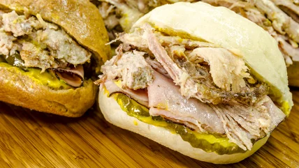 Are you a fan of the Cubano? For many, the way its hearty mix of pork products, cheese, mustard, and pickles all blend together into a harmonious whole is hard to resist. Well, a medianoche is basically a Cuban sandwich with one notable twist: The bread is different. Have you ever thought, "I like Cubanos, but the bread could be a bit softer?" Then the medianoche is the sandwich for you.