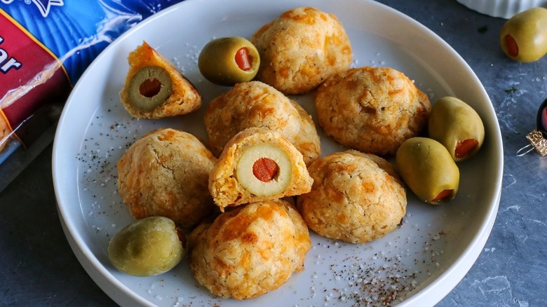 Olive-cheese balls are a retro appetizer that exudes Mediterranean flair, adding a burst of flavor to party spreads. Combining the briny essence of olives with the creamy richness of cheese, these bite-sized wonders embody a harmonious blend of savory goodness.