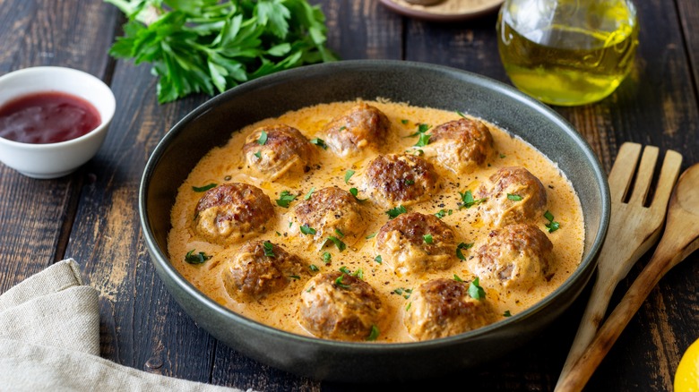 The distinctive feature of Swedish meatballs lies in the creamy and savory sauce that accompanies them. A velvety mixture, typically made with beef or vegetable broth, heavy cream, and soy sauce, adds richness and depth to the dish.