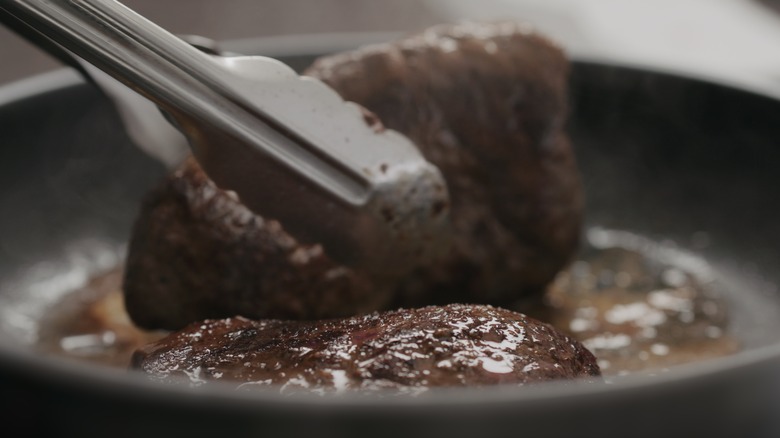 Some chefs may suggest placing your steak into a hot pan and flipping it only once for the perfect sear. While there are reasons this advice may be recommended, including concerns over lowering the temperature of the pan every time you flip your steak, research has shown that flipping it more frequently can make for a quicker and better quality result.