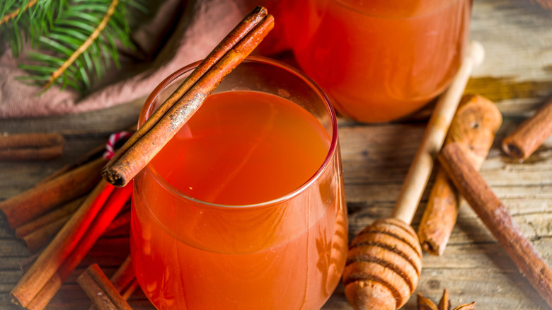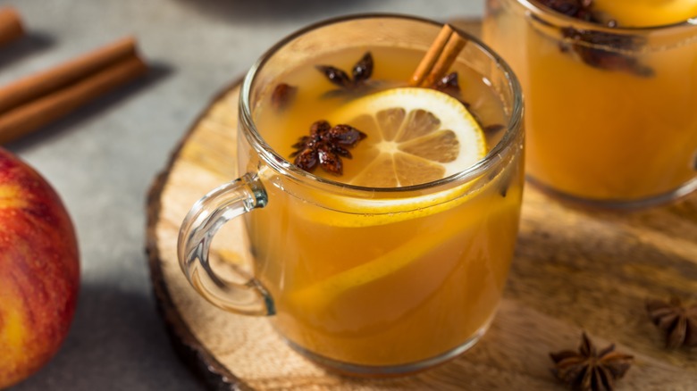 If you're a fan of apple cider, chances are you'll love wassail. It's essentially a punch made by simmering cider with classic mulling spices like cinnamon, cloves, anise, and cardamom pods, brightened up with a splash of orange juice for a tangy boost. Like any punch, the ingredients are flexible, so you can feel free to skip a particular spice or two if you don't have any on hand or simply don't like them; likewise, if you have something else delicious that you want to try mixing in, like another fruit juice, give it a shot. It's not uncommon for wassail recipes to include cranberry and/or pineapple juice, and sometimes black tea bags are used for some added depth of flavor and subtle bitterness. If you or your guests have more of a sweet tooth, you can also add brown sugar to (literally) sweeten the pot.