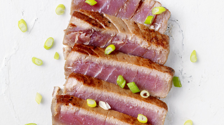 Air-fried tuna is a versatile dish that can benefit from a wide range of seasonings and marinades. Asian-inspired flavors work particularly well, with soy sauce and rice vinegar being among the top choices. Classic lemon pepper seasoning is another go-to way to flavor the steaks, as is a coating of olive oil and cracked pepper. You can't go wrong with plenty of garlic and herbs, either. And don't forget juices and zests — citrus like orange and lemon juice are both excellent marinade choices for moist, vibrant tuna.