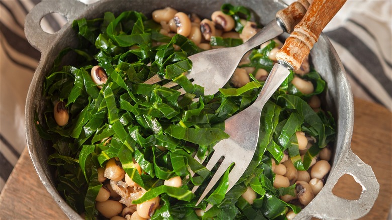 Isn't it true that most of our favorite homestyle meals can be upgraded with delicious servings of sautéed greens? Whether preparing baked chicken or classic beef meatloaf, rounding out your meals with satisfying vegetable-based side dishes is always a good idea. Out of all the options to choose from, collard greens have been a Southern staple for decades. Often served with barbecued foods, macaroni and cheese, or freshly baked cornbread, collard greens provide hearty meals with a satisfying dose of added color and texture. Next to these positive attributes, Healthline says collard greens are also packed with antioxidants and essential nutrients such as vitamin K, calcium, and folate. Even though these dark green veggies have several health benefits, collard greens are categorized as cruciferous vegetables, like Brussels sprouts and cabbage, and impart a slightly sharp flavor to your palate.