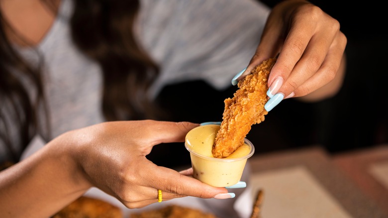 Not to be confused with cowboy butter, this light orange-colored dipping sauce is super smooth and creamy without being buttery. At the same time, it's also sweet and zesty — which makes it the perfect pairing for starchy, salty tater tots. It can come with a kick of citrus and a punch of heat too. This mingling of different flavors is what makes it especially craveable.