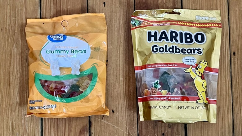 Walmart selling packs of Gummy Bears is not some new revelation. The retailer has been selling these treats made with beef gelatin for well over a decade. However, since we've convened to compare its new chocolates to name brand products, let's do the same with these little colorful fellers.